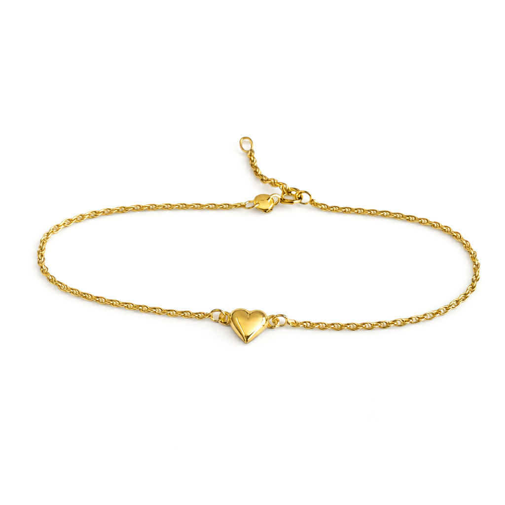 Forgylt sølv fotlenke Cordel med hjerte 22+2cm