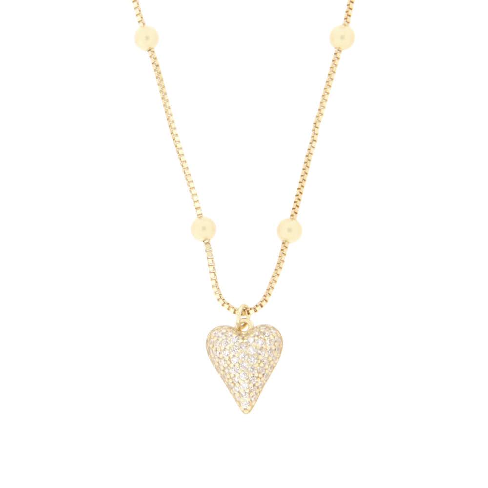 Forgylt sølv halssmykke hjerte med blanke zirconer 42+5cm