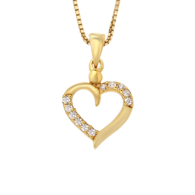 Nydelig halssmykke i forgylt sølv, med åpent hjerte og blanke cubic zirconia. Den perfekte gave til noen man er glad i. Leveres med kjede.