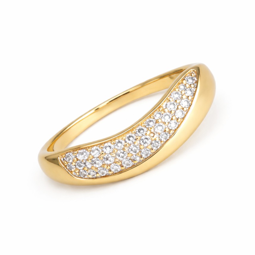 Forgylt sølv ring med bue av zirconer