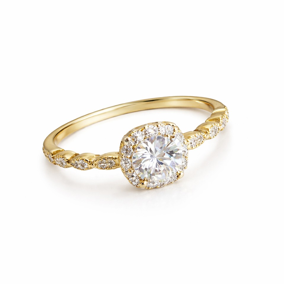 Forgylt sølv ring rosett med blanke zirconer