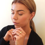 Trendy ring i forgylt sølv, med blanke zirconer. Ringen er åpen på baksiden, og kan lett justeres i størrelsen.