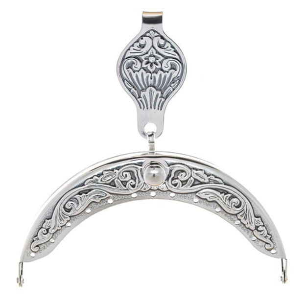 Capespenne i oksidert sølv, med syhull. Spennen passer til Rogalandsbunad.