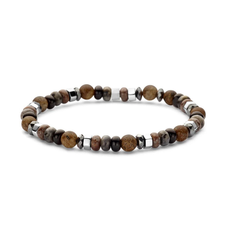 Frank 1967 stål armbånd 6mm perler/mix i mørke jordfarger