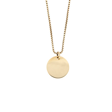 Klassisk graveringsplate i 14K/585 gulll. En tidløs gave som garantert faller i smak. Anhenget måler 14,5mm. Anhenget leveres uten kjede. Dette produktet kan graveres. Scroll ned for å se alternativer for gravering.