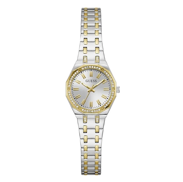 Guess Ladies Bejeweled tofarget stål 25mm 3atm sølvfarget skive og lenke