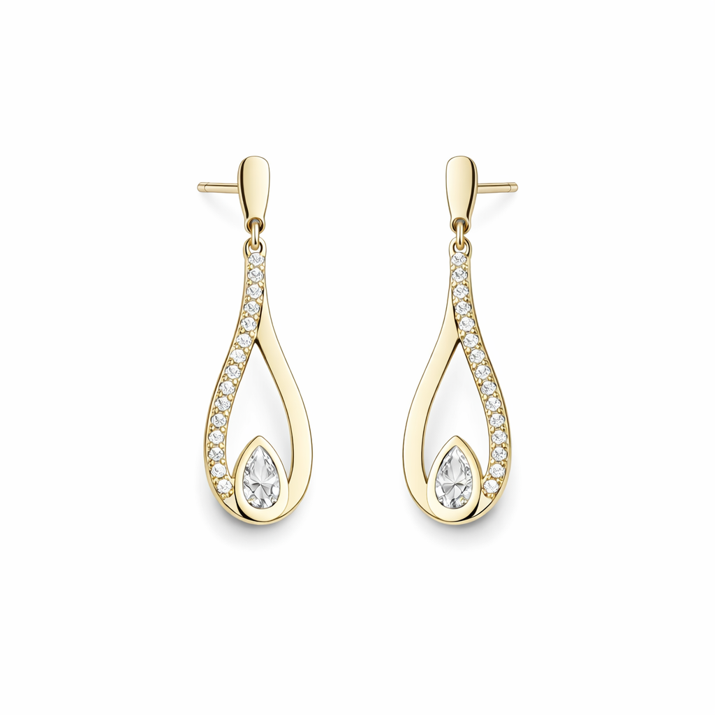 Vakre øredobber i 14K/585 gull, med åpen dråpe og blanke cubic zirconia.