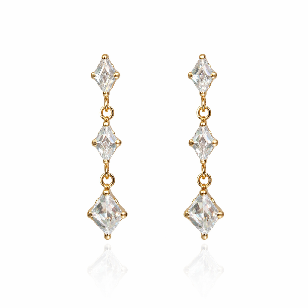 Gull øreheng romber med blanke Cubic Zirconia