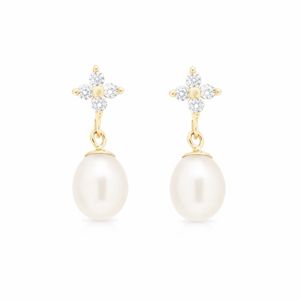 Nydelige øredobber i 14K/585 gull, med ferskvannsperler og blanke zirconer.
