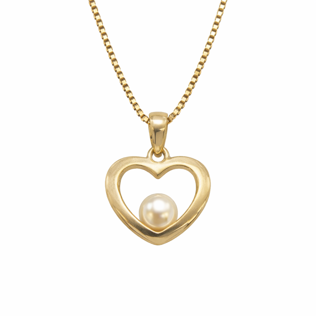 Klassisk hjerteanheng i 14K/585 gull, med 5mm ferskvannsperle.