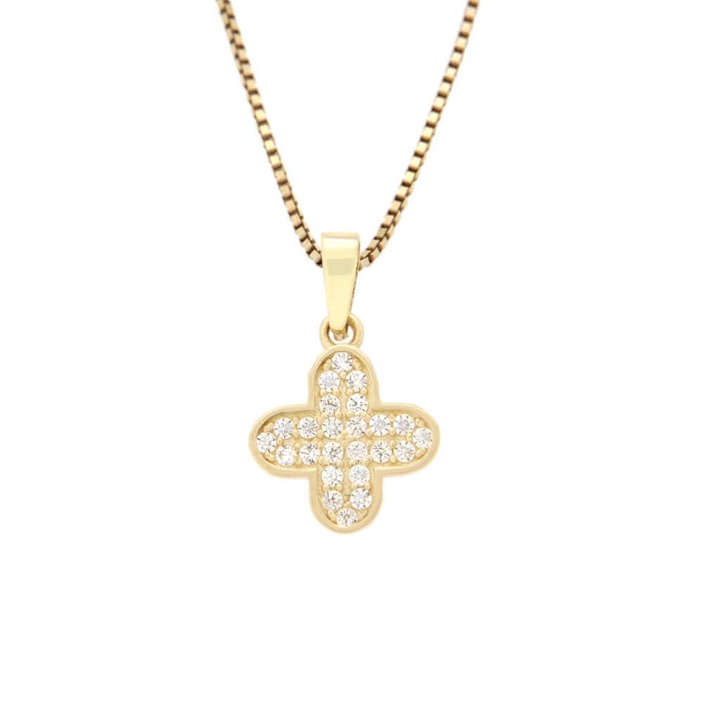 Nydelig anheng i 14K/585 gull, med blanke zirconer og kløver.