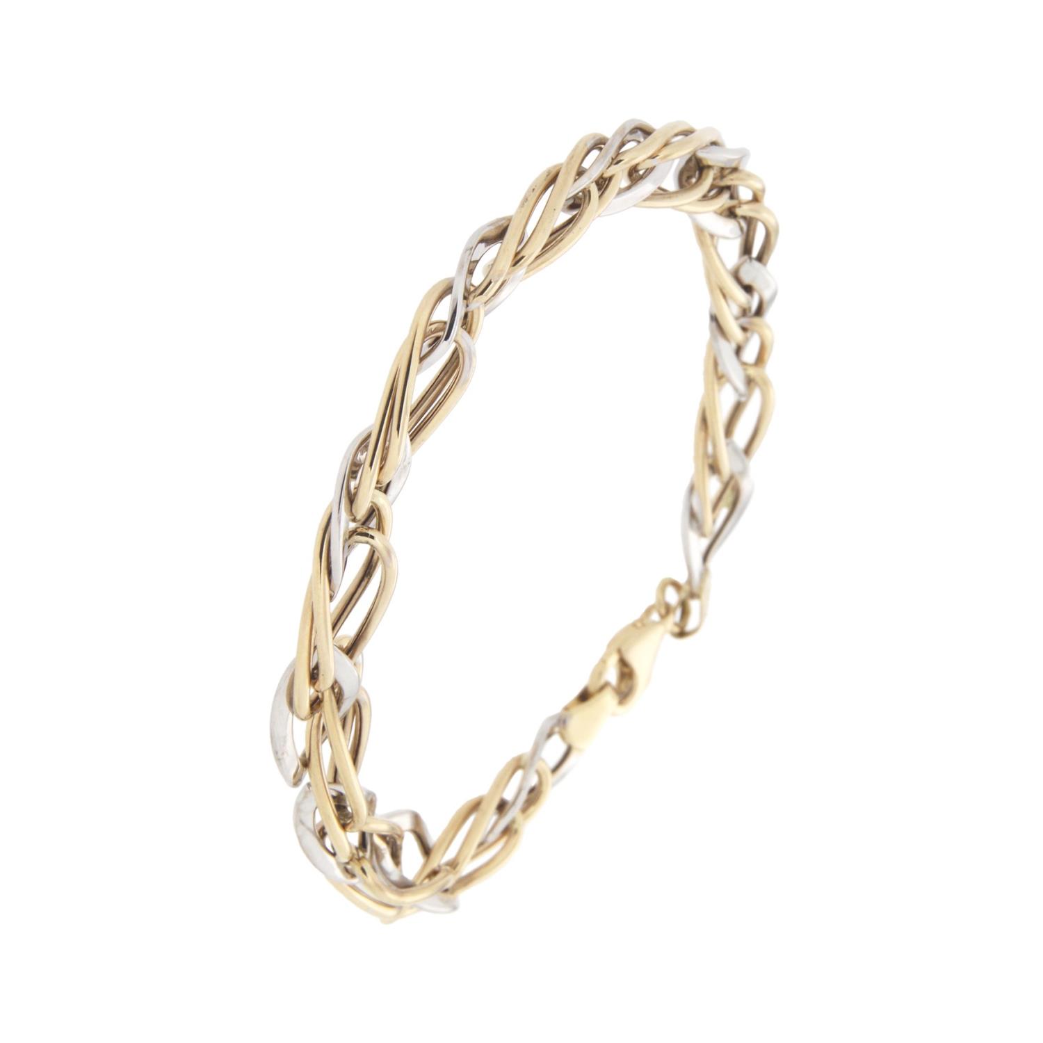 Stilig armlenke i 585 gull, med tvinnet design. Lenken er i bicolor, med både hvitt og gult gull. En nydelig gave som aldri går av moten. Bredde: 7mm. Lengde: 19,5cm.