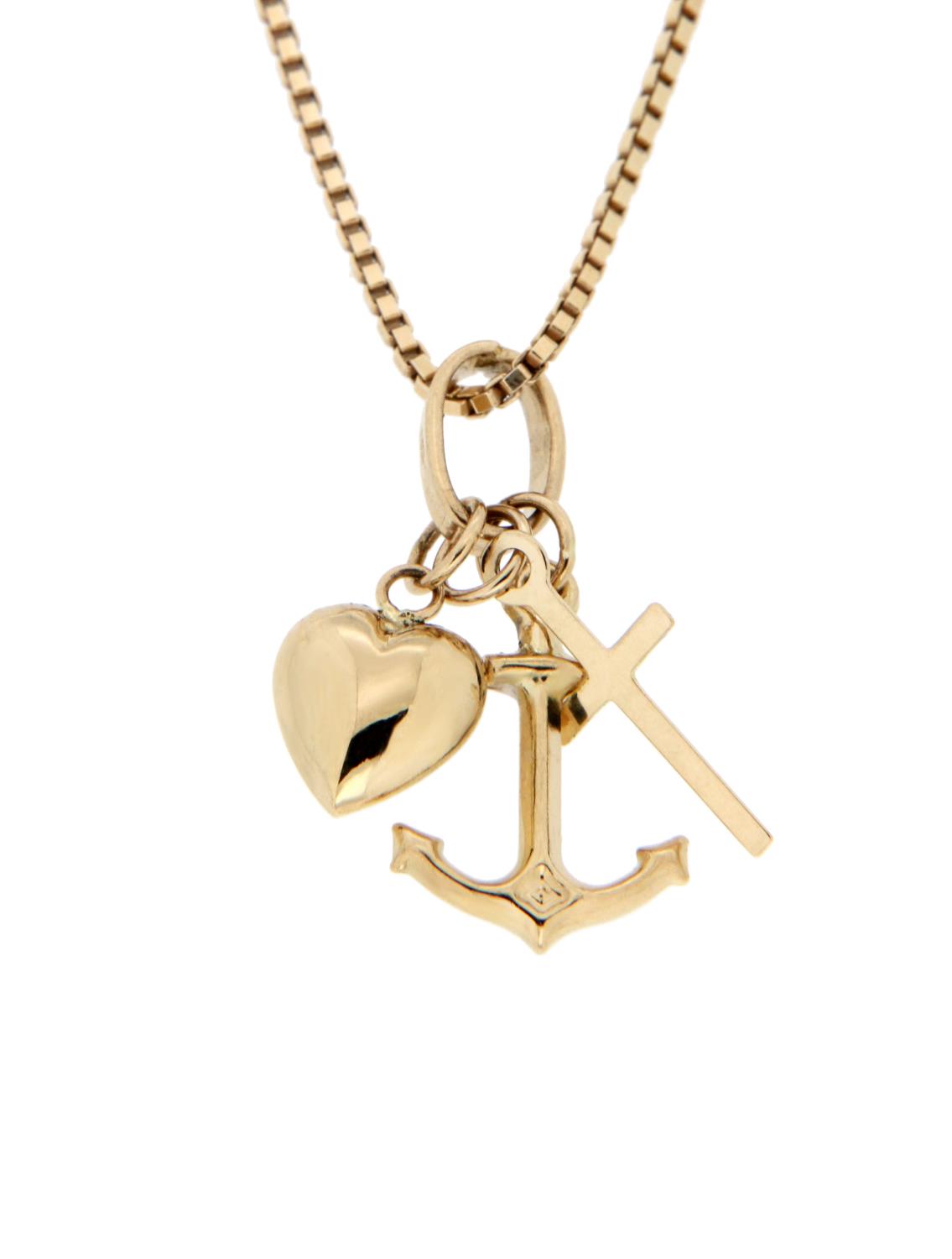 Vakkert anheng i 14K/585 gulll, med tro, håp og kjærlighet. Perfekt som gave til dåp og konfirmasjon. En tidløs skatt som du kan ha glede av i mange år!