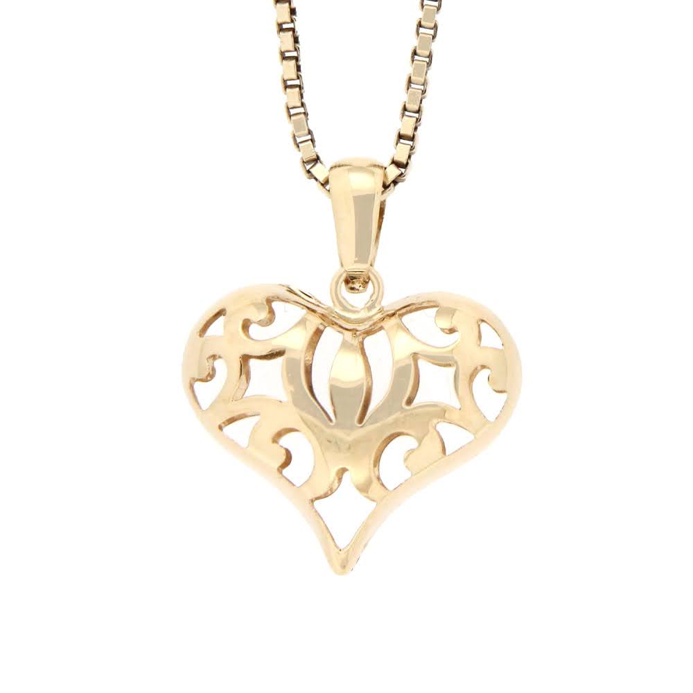 Vakkert hjerteanheng i 14K/585 gull, med åpent mønster. Hjertet måler 15x12mm. Den perfekte gave til bursdag, valentinesdag og konfirmasjon.