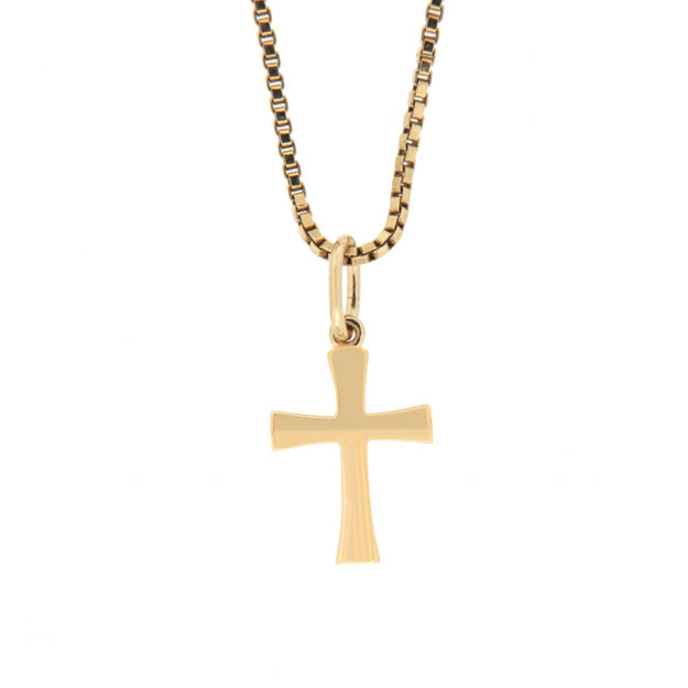 Tradisjonelt og stilrent kors i 14K/585 gull, med glatt overflate. En fin gave til konfirmanten. Anhenget måler 13mm. Anhenget leveres uten kjede.