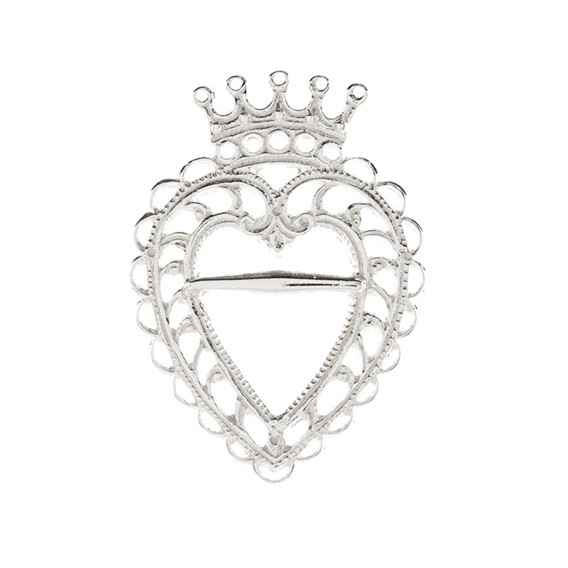 Hårstrikk med hjertebrosje, i hvitt sølv.