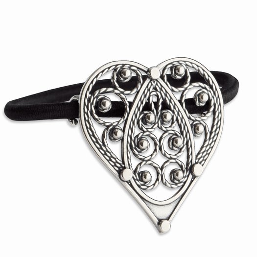 Hårstrikk stort oksidert filigran hjerte