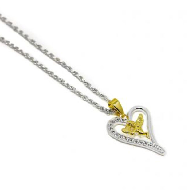 Halvlangt kjede sølvbelagt hjerte med stener og gullbelagt engel