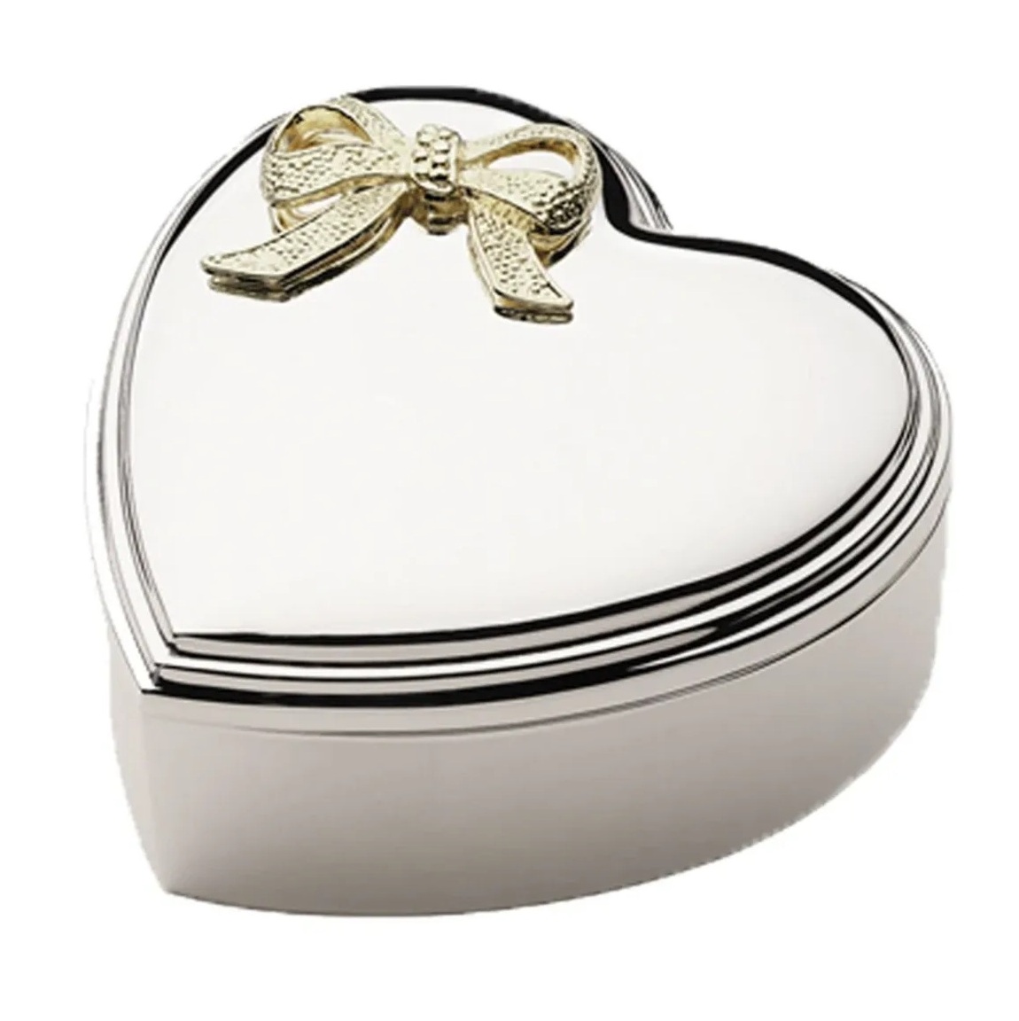 Hjertesmykkeskrin forkrommet med forgylt sløyfe 10x10cm