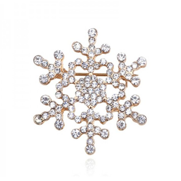 Julenål gullbelagt snøfnugg med blanke steiner 39mm