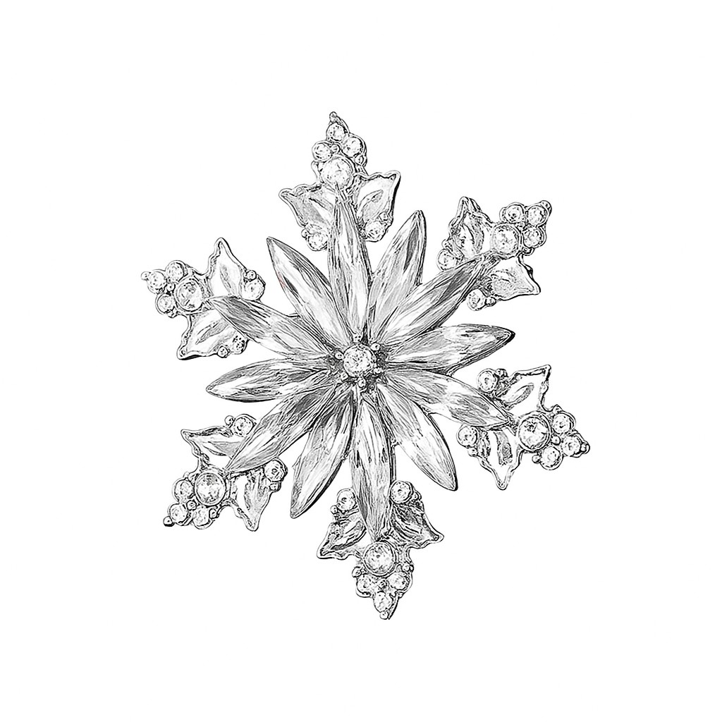 Julenål sølvbelagt snøfnugg med blanke steiner 39mm