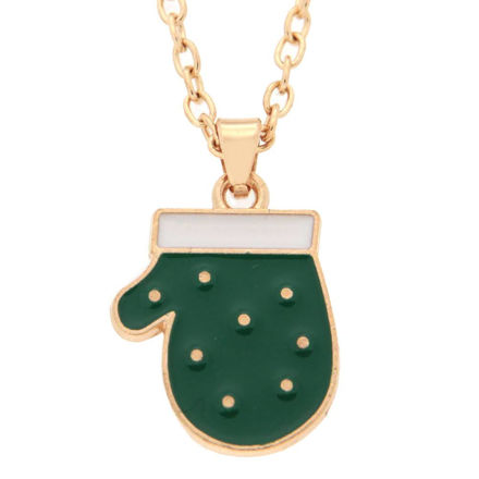 Stilig julesmykke i forgylt, med julevott i grønt og hvitt.