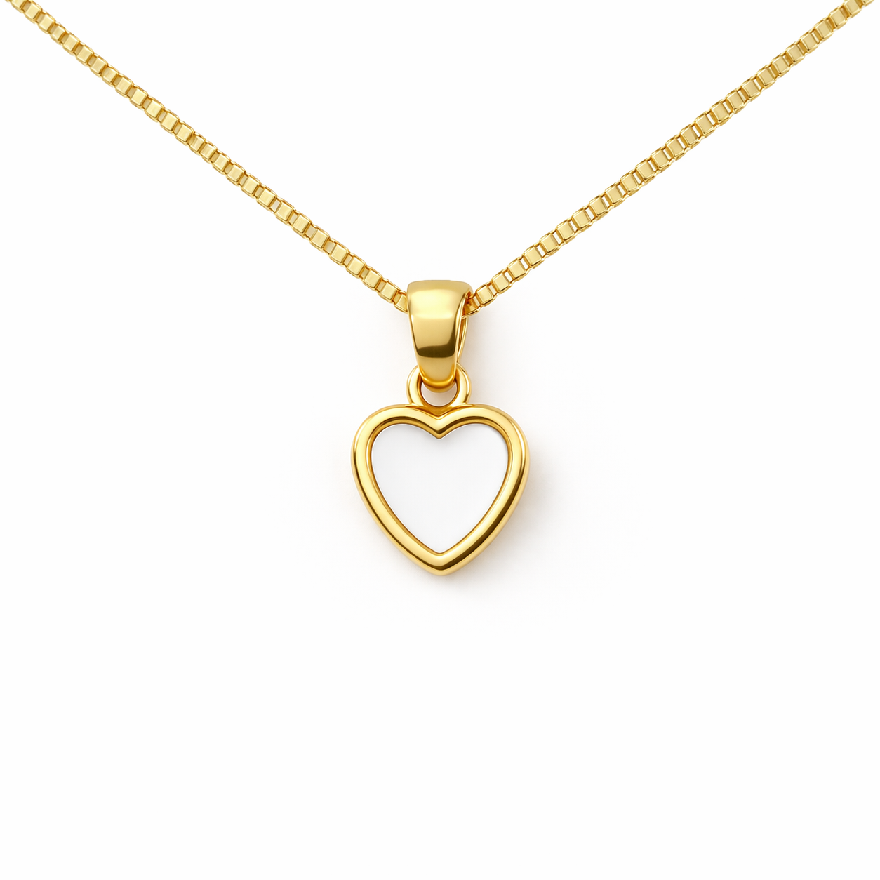 Lille Venn 375 gull anheng hjerte hvit med perlemor
