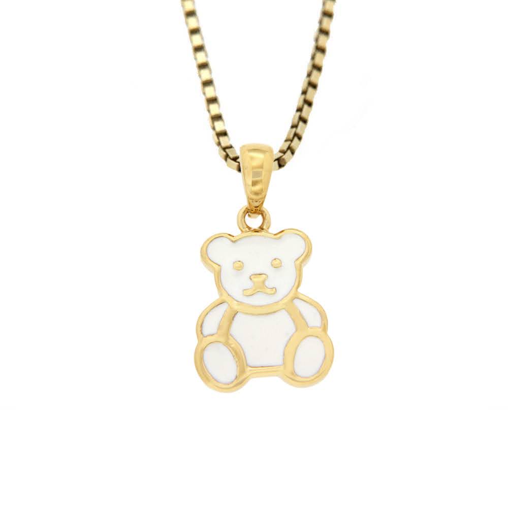 Lille Venn forgylt sølv halssmykke bamse med hvit emalje