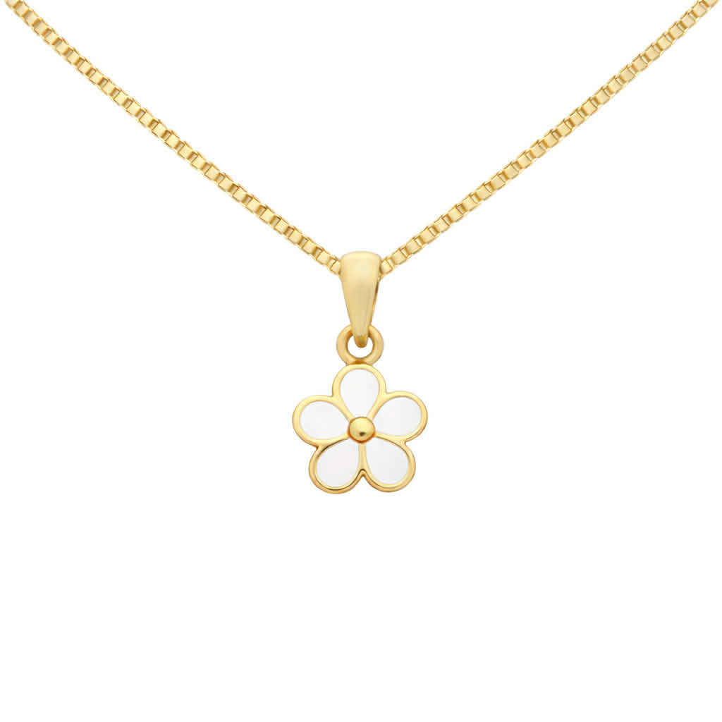Lille Venn forgylt sølv halssmykke blomst hvit emalje 8,3mm
