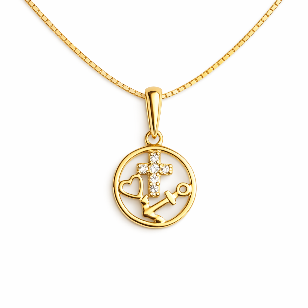 Vakkert anheng i 9K/375 gull, med tro, håp og kjærlighet.
