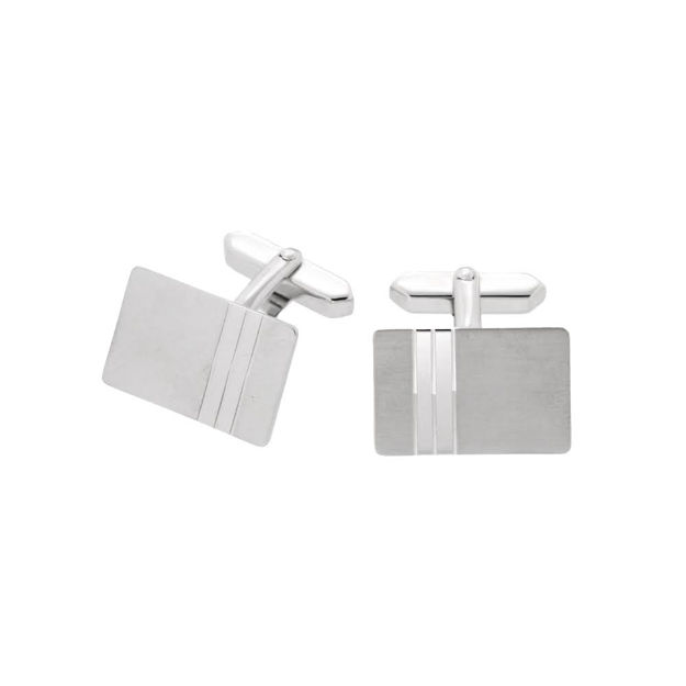 Mansjettknapper rhodinert sølv matt med 2 glatte striper