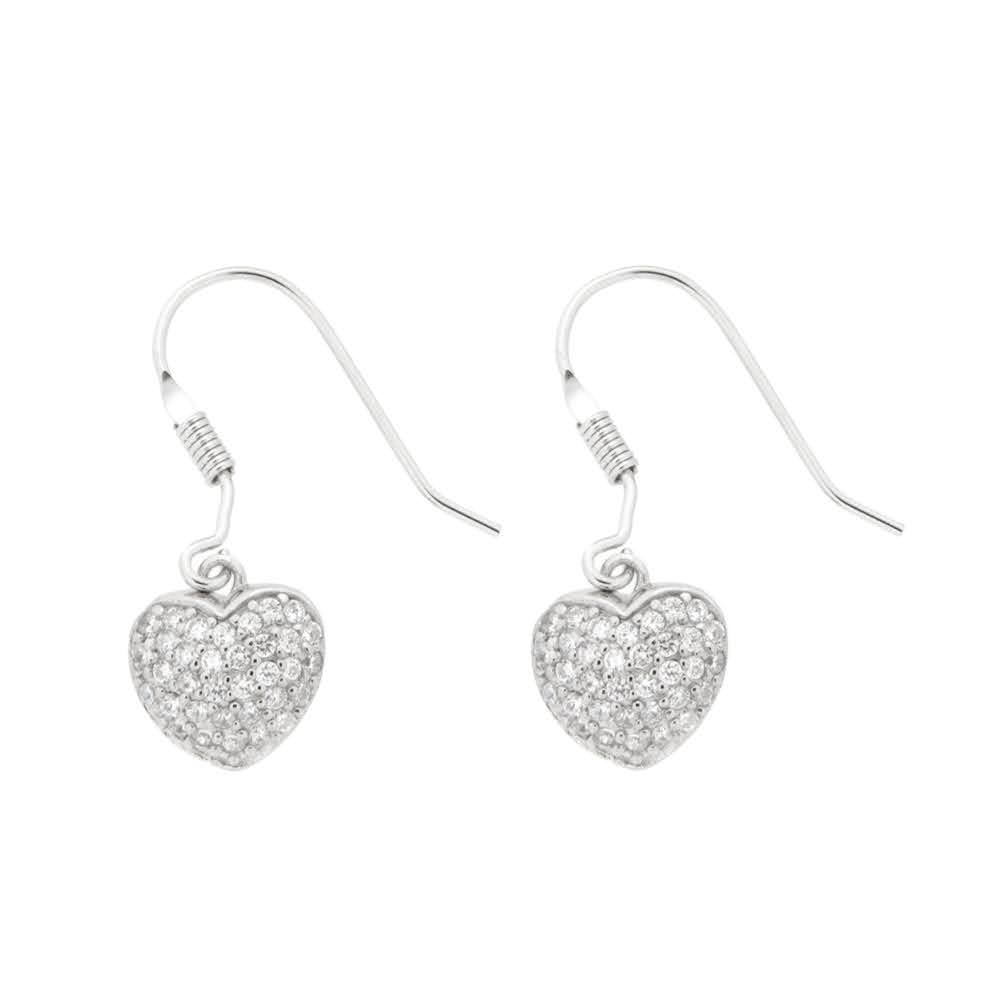 Rhodinert sølv øreheng hjerter med zirconer 10mm