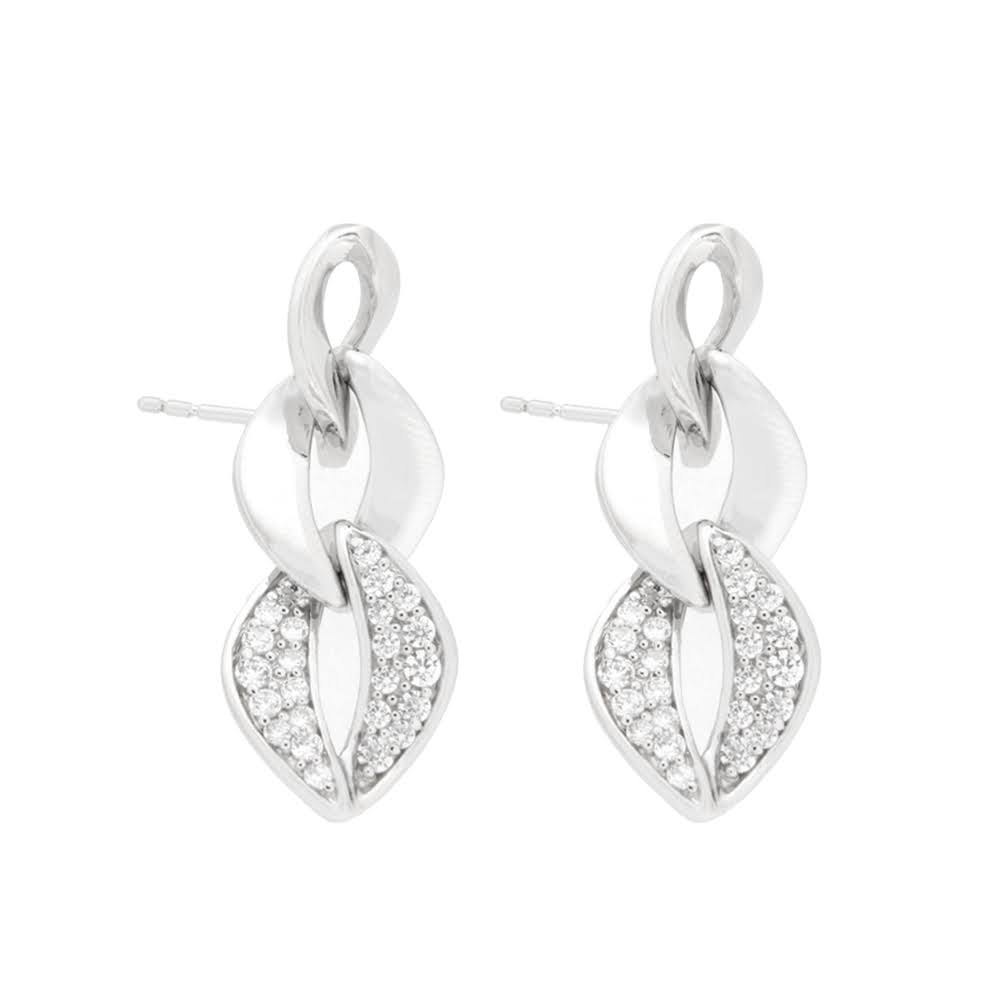 Rhodinert sølv øreheng lenkede former med cubic zirconia
