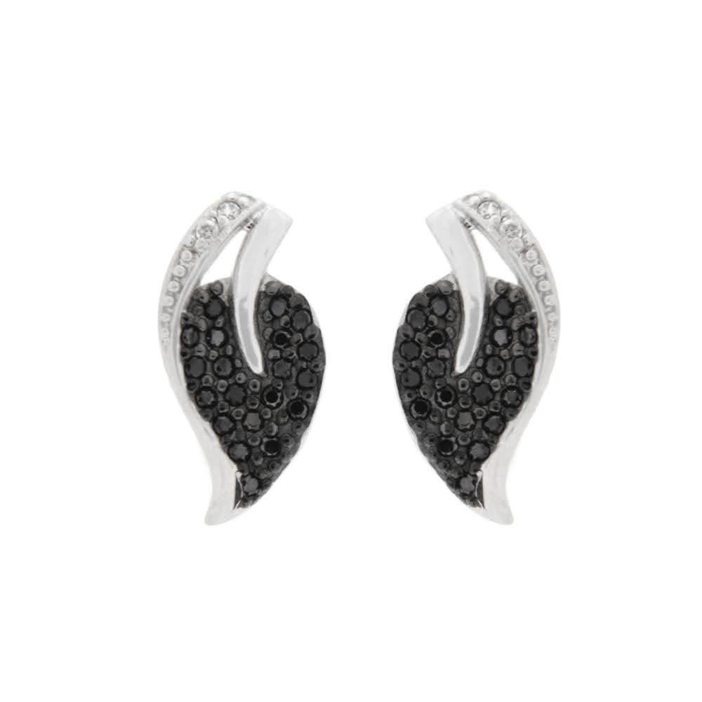 Rhodinert sølv ørepynt blad med sorte zirconer