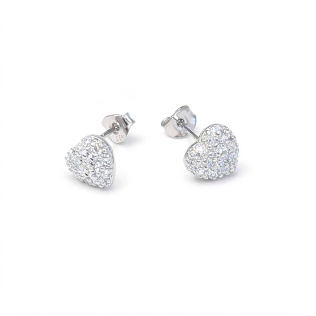 Rhodinert sølv ørepynt hjerte med blanke zirconer 8x8.5mm