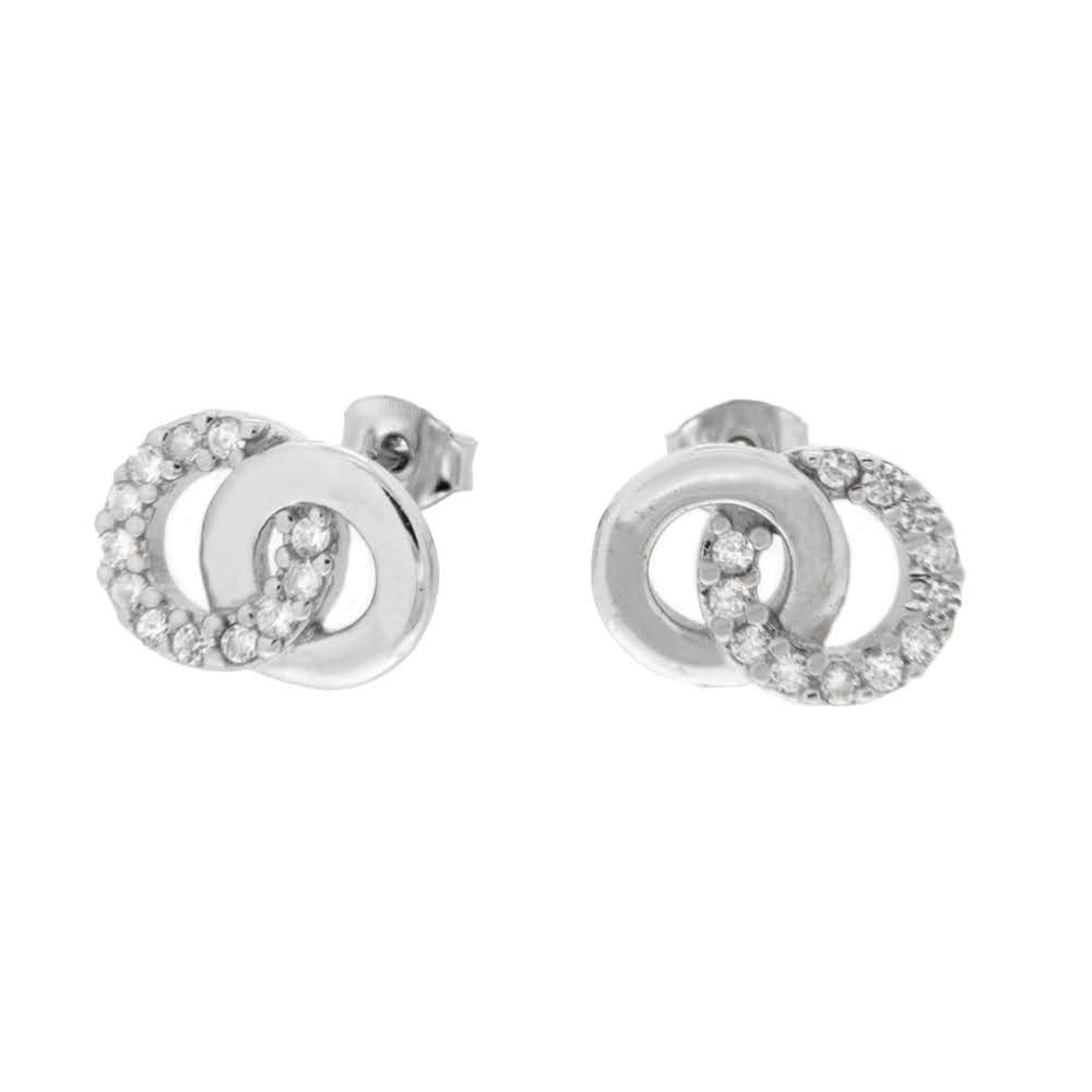 Rhodinert sølv ørepynt med to sirkler blank og blanke zirconer