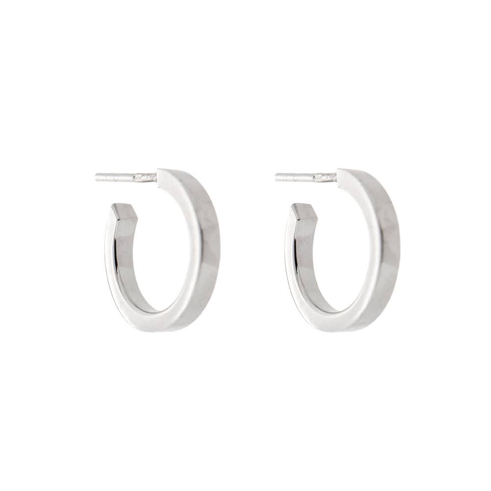 Klassiske øreringer i rhodinert sølv, med glatt overflate. Bredde: 2,3mm. Lengde: 15mm.