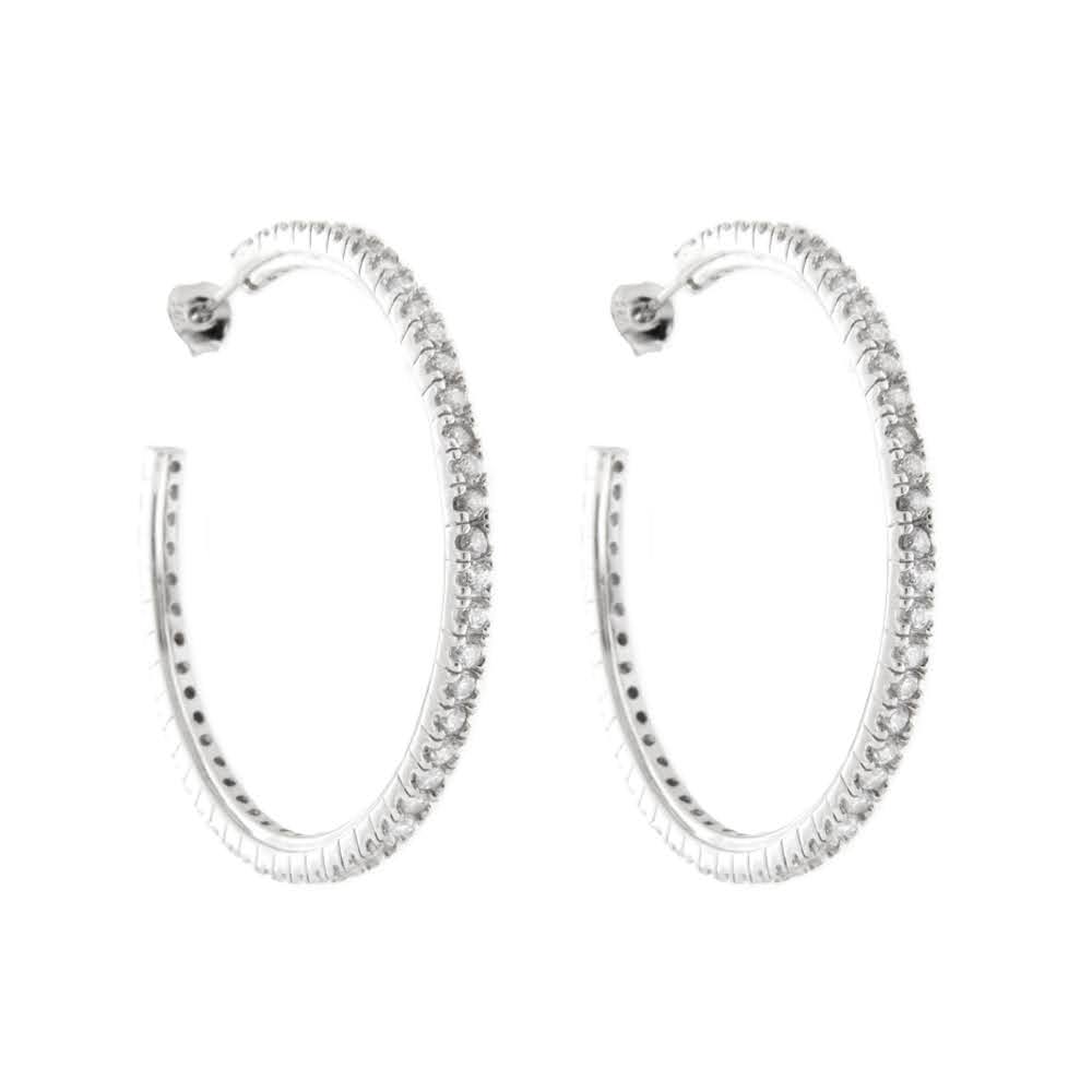 Rhodinert sølv øreringer med blanke zirconer 45mm