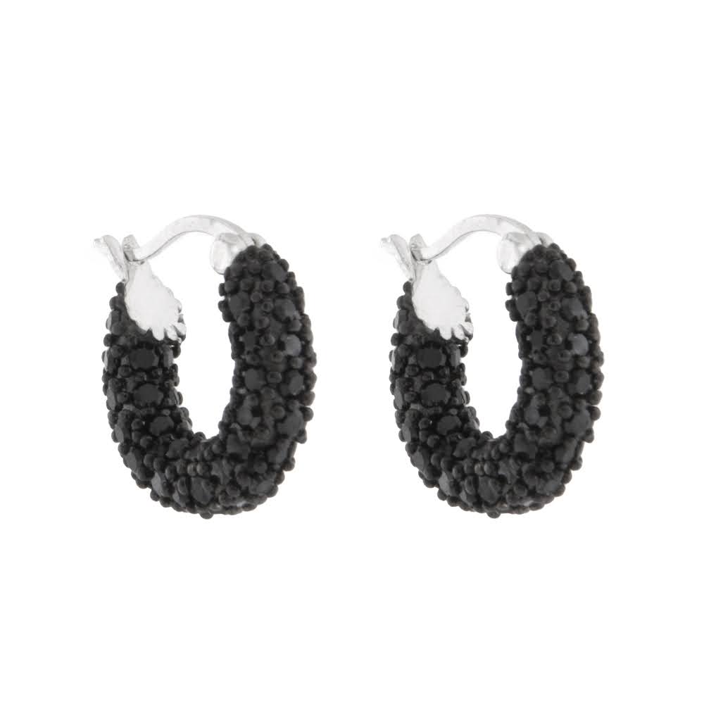 Rhodinert sølv øreringer med sorte zirconer