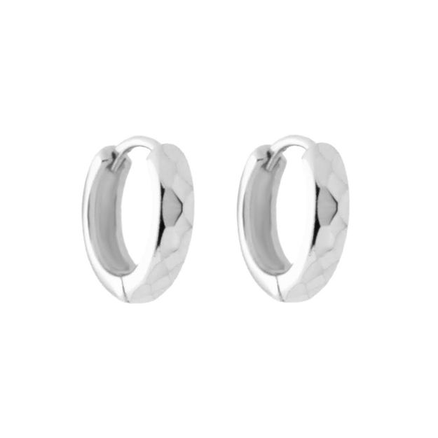 Klassiske øreringer i rhodinert sølv, med slipt mønster på overflaten. Bredde: 3mm. Lengde: 12mm.