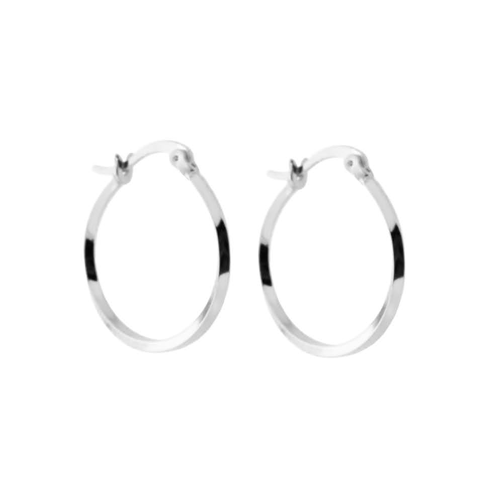 Stilrene øreringer i rhodinert sølv, med vridd form. Bredde: 1,5mm. Lengde: 20mm.