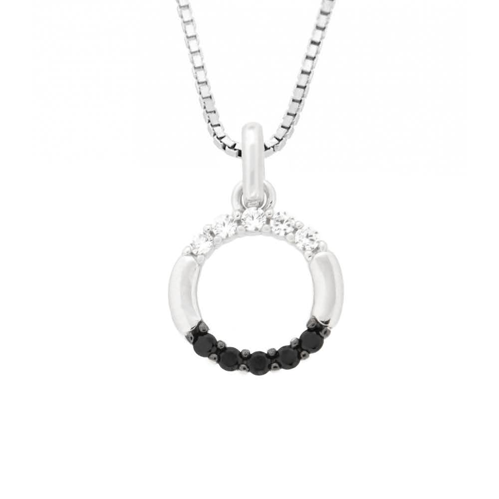 Rhodinert sølv anheng åpen sirkel sorte/blanke cubic zirconia 42cm