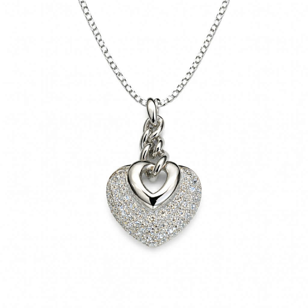 Rhodinert sølv anheng hjerte med 3 rader cubic zirconia 45cm