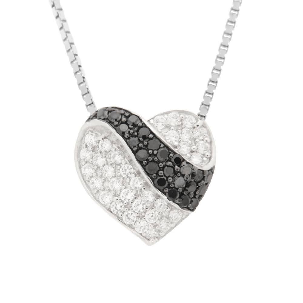 Rhodinert sølv anheng hjerte med sorte og blanke zirconer 23mm 42cm