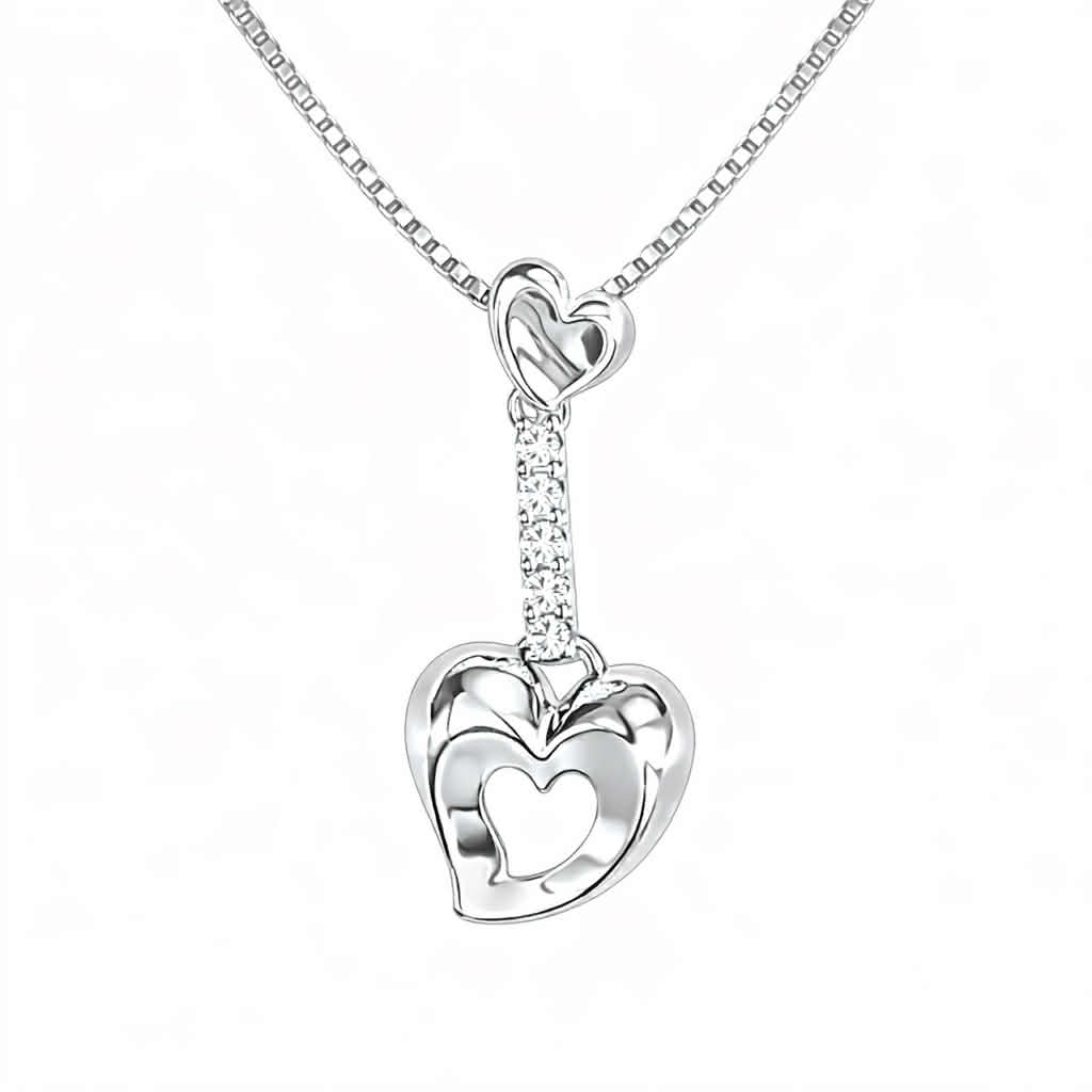 Rhodinert sølv anheng hjerter med rad av cubic zirconia 45cm