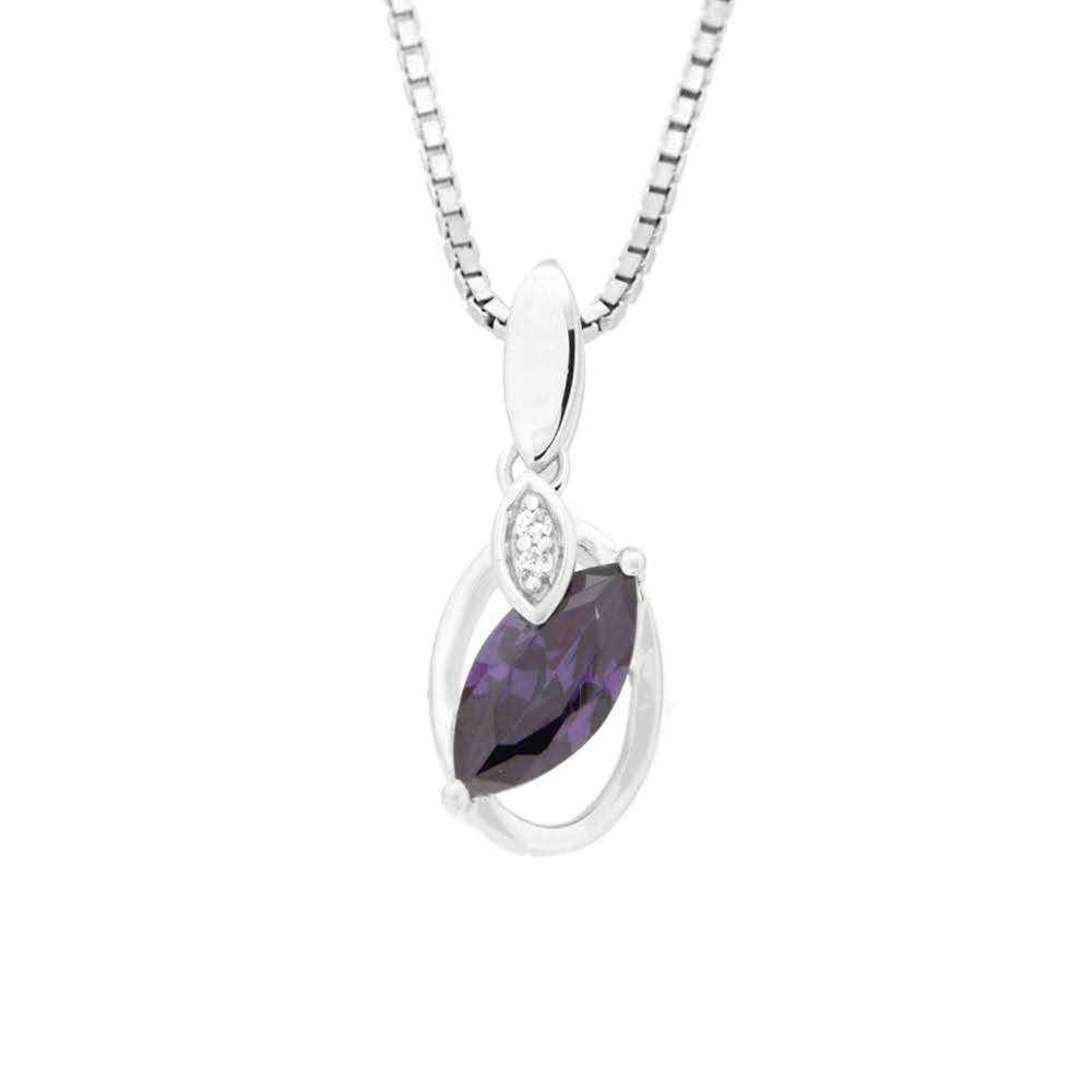 Rhodinert sølv anheng med lilla marquise zircon og blanke cubic zirconia 42cm
