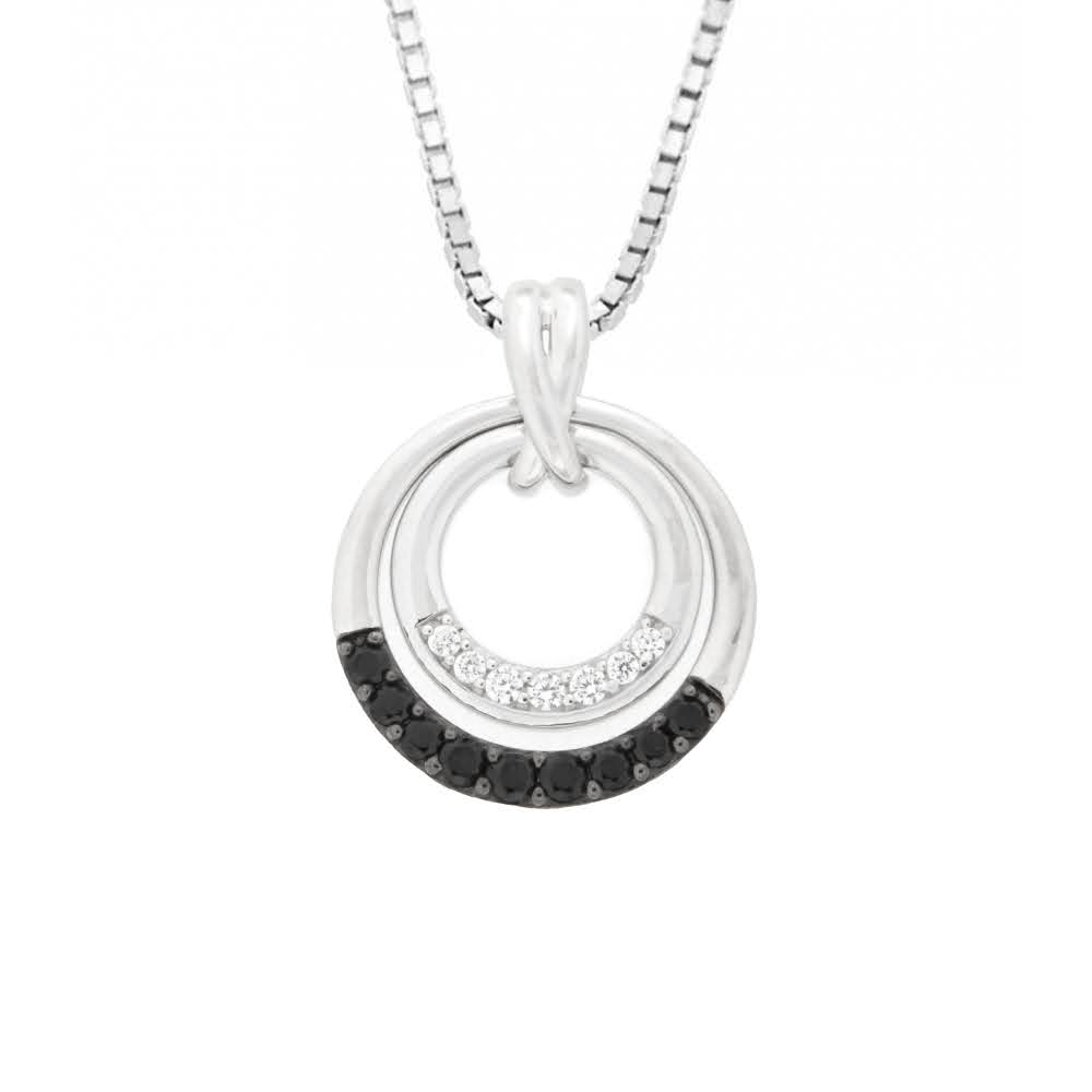Rhodinert sølv anheng sirkler med cubic zirconia og sorte zirconer 45cm