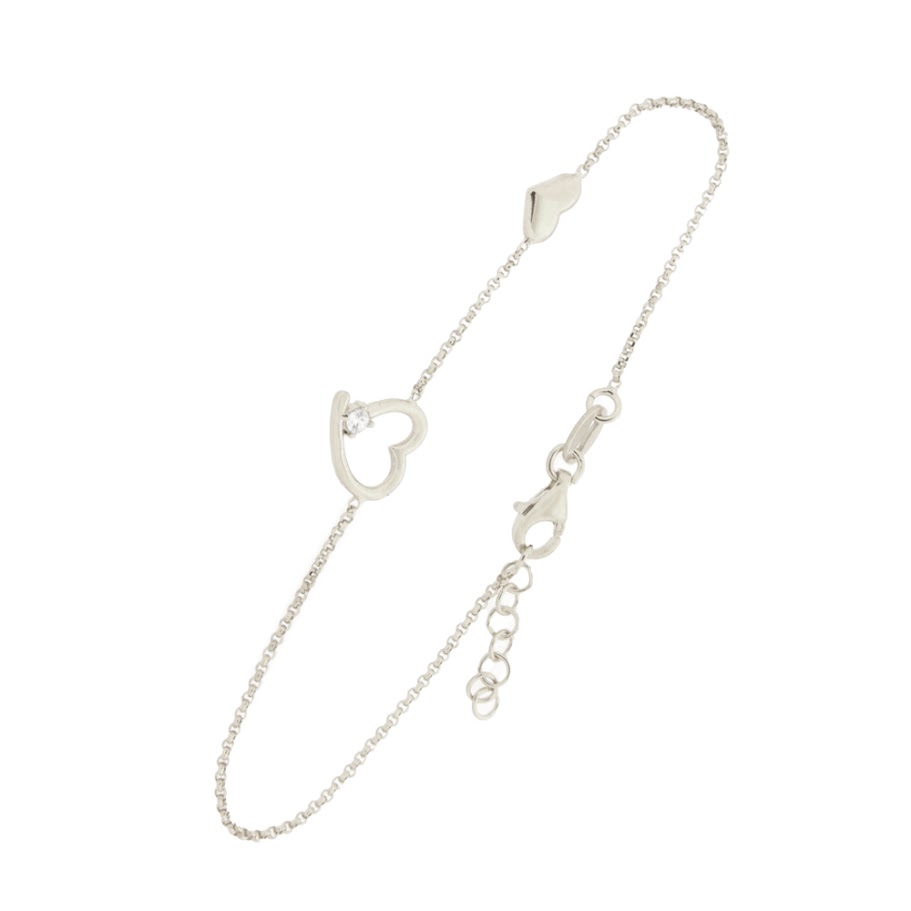 Rhodinert sølv armlenke hjerte med 3mm zircon + glatt hjerte 17+2cm