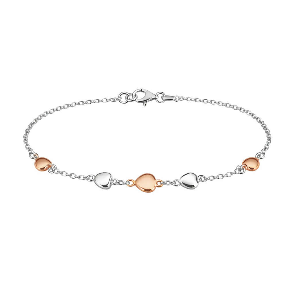 Rhodinert sølv armlenke med 5 hjerter rhodinert + rosé 18cm