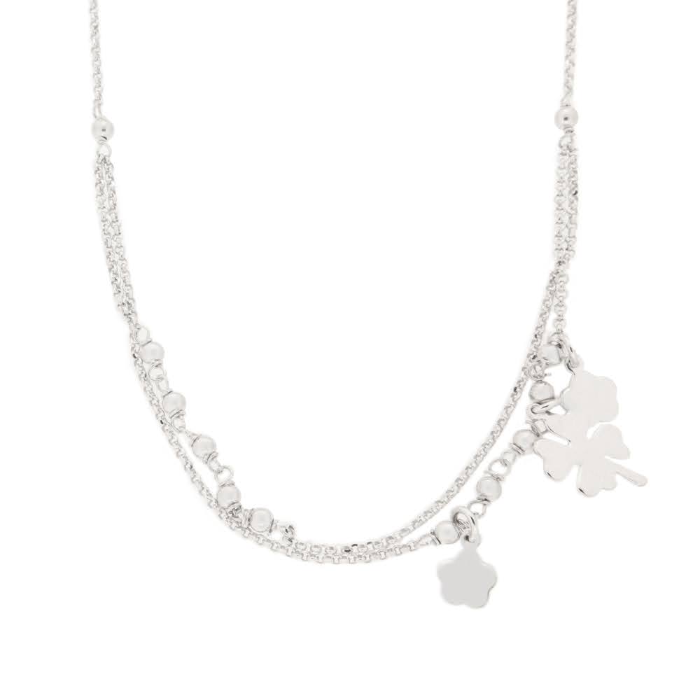 Rhodinert sølv collie 2-radig med glatte kuler, blomster & kløver 40+2cm